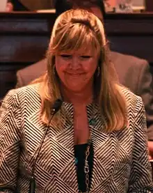 Gloria Johnson (born May 25, 1962)[1] is an American politician and Democratic member of the Tennessee House of Representatives currently representing District 90, and formerly District 13, based in Knoxville.[2] In April 2023, she and two other state representatives faced expulsion votes from the Tennessee General Assembly after taking to the floor of the State House unrecognized to protest gun violence. Johnson was the only one of the three legislators not to be expelled. Johnson is currently seeking the Democratic Party nomination for the 2024 United States Senate election in Tennessee currently held by incumbent Republican Marsha Blackburn.