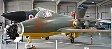 In 1946, the first prototype (W4041) was placed in the Science Museum in Central London, where it is exhibited today in the Flight Gallery.[27] A full-size replica has been placed on an obelisk on a roundabout near the northern perimeter of Farnborough Airfield in Hampshire, as a memorial to Sir Frank Whittle. A similar full-size model is on display in the middle of a roundabout at Lutterworth in Leicestershire, where the aircraft's engine was produced.