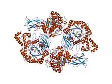 Glycoside hydrolases EC 3.2.1. are a widespread group of enzymes that hydrolyse the glycosidic bond between two or more carbohydrates, or between a carbohydrate and a non-carbohydrate moiety. A classification system for glycoside hydrolases, based on sequence similarity, has led to the definition of >100 different families.[1][2][3] This classification is available on the CAZy web site,[4][5] and also discussed at CAZypedia, an online encyclopedia of carbohydrate active enzymes.[6][7]