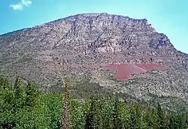 Like other mountains in Glacier National Park, it is composed of sedimentary rock laid down during the Precambrian to Jurassic periods. Formed in shallow seas, this sedimentary rock was initially uplifted beginning 170 million years ago when the Lewis Overthrust fault pushed an enormous slab of precambrian rocks 3 mi (4.8 km) thick, 50 miles (80 km) wide and 160 miles (260 km) long over younger rock of the cretaceous period.[6]