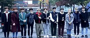 On May 15, Woollim Entertainment launched new boy group Golden Child, their first boy group in seven years since Infinite.[6][7] On May 17, the eleven member names of the group's line-up were revealed.[8][9][10] On May 22, Woollim Entertainment dropped "class photos" concept for Golden Child and confirmed that they would have their pre-debut reality show 2017 Woollim Pick.[11][12] On August 9, it was announced that Golden Child would make a cameo appearance on 20th Century Boy and Girl.[13]