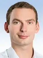 Holos (Ukrainian: Голос), translated as Voice or Vote, is a liberal and pro-European political party in Ukraine, which was led by Ukrainian musician Svyatoslav Vakarchuk until March 2020.[11] The party won 20 MPs in the 2019 parliamentary election[12] and became part of the opposition in the current Ukrainian parliament.[13][14] The party split late July 2021 and seven MPs were expelled from the party.[15] As of September 2021, only nine of the party's 20 seats in the Verkhovna Rada are held by MPs who are loyal to the party; the remaining 11 are held by MPs who have formed a breakaway group called Justice (Ukrainian: Справедливість; Spravedlyvist).[16]