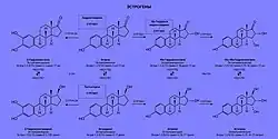 Sex hormones, also known as sex steroids, gonadocorticoids and gonadal steroids, are steroid hormones that interact with vertebrate steroid hormone receptors.[1] The sex hormones include the androgens, estrogens, and progestogens. Their effects are mediated by slow genomic mechanisms through nuclear receptors as well as by fast nongenomic mechanisms through membrane-associated receptors and signaling cascades.[2] The polypeptide hormones luteinizing hormone, follicle-stimulating hormone and gonadotropin-releasing hormone – each associated with the gonadotropin axis – are usually not regarded as sex hormones, although they play major sex-related roles.