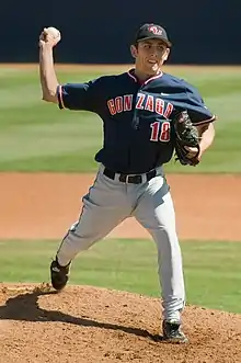 In 2016, as a sophomore future major leaguer Eli Morgan was 10–3 with a 3.73 ERA in 16 starts,[57] earning him a spot on the All-West Coast Conference (WCC) First Team.[58] His 10 wins tied him for second-most in the WCC, and his 3 shutouts led the conference.[59] In 2017, his junior season,[60] Morgan compiled a 10–2 record with a 2.86 ERA in 14 starts, during which he struck out a conference-leading 138 batters (second-most in school history) in 100.2 innings (12.3 strikeouts/9 innings), and was once again named to the All-WCC First Team.[61] His 10 wins again tied him for second-most in the WCC, and he tied for the conference lead with two shutouts.[62] He was one of four pitchers in the country with more than one 15-strikeout games.[63] He was also named Perfect Game/Rawlings First Team All-American, Collegiate Baseball Second Team All-American, three-time National Player of the Week, and five-time Rawlings WCC Pitcher of the Week.[63]