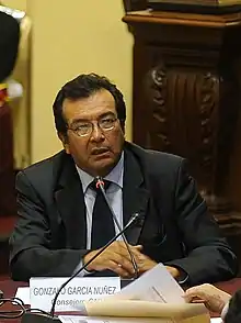 Gonzalo García Núñez (born 16 February 1947) is a Peruvian industrial engineer from the Peruvian University of Ingenieria, Lima 1968, Graduate of the French center of economics programs CEPE, Phd. in economics from Grenoble University, he is a professor, banker, entrepreneur, economist[1] and politician. Full Professor of Macroeconomics and industrial organisation of the Peruvian University of Engineering, he was elected General Secretary, President of the chapter of industrial and economics engineers, President of the Society of Professors of the University of engineering, secretary and chairman of the faculty of systems engineers and President of the national engineer institution of Peru, the Colegio de Ingenieros del Peru. With the Izquierda Unida party in 1983 he was elected Councillor of Lima, reelected in 1986 and he was candidate to the upper house of the Congress in 1990, under the Izquierda Socialista, but he was unsuccessful. He was an opponent of former President Alberto Fujimori in the Foro Democratico ngo. He was elected Central Bank director by an absolute majority of the Peruvian congress in 2001. Member of "Justice and Liberty" he was invited by Ollanta Humala, the candidate of the Peruvian Nationalist Party and he ran as Ollanta Humala's first Vice President during the 2006 national election on the coalition between Union for Peru and the Peruvian Nationalist Party. The ticket won in the first round of voting with 30.6% of the total vote but lost in the second round (47.6%). Gonzalo Garcia was responsible of the large team of government planning of the ticket, editor of the plan named The Great Transformation, in honour of Karl Polanyi, and native name Llapanckik in Quechua.[2]