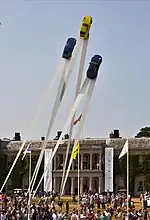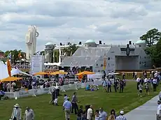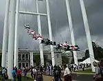 Aston Martin set up a central display for the first Festival of Speed in 1993.[21] Since 1997, the display erected on the lawn in front of Goodwood House has been designed by the sculptor Gerry Judah.[22] The displays honoured car marques until 2017, when for the first time it honoured a career, that of Bernie Ecclestone. This is a list of the temporary monuments: