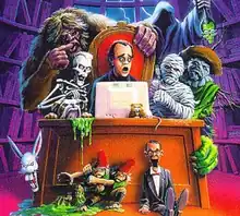 An illustration of R. L. Stine with some of his creations. This illustration was from the cover of Stine's autobiography, It Came from Ohio!: My Life as a Writer.