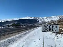 The M-2 Highway that connects the capital Yerevan with southern Armenia and the Nagorno-Karabakh Republic passes through Goris. Since November 2021, the Goris-Kapan road that connects the town with Kapan and at some points crosses the de facto Armenia-Azerbaijan border has not been in use due to the establishment of Azerbaijani border controls on the road, with an alternative route going through Tatev being used instead.[27]