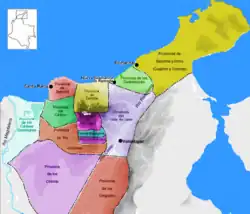 The Spanish expedition led by Alonso de Ojeda, Amerigo Vespucci and Juan de la Cosa arrived to the coast of the Guajira Peninsula in 1499. In a second voyage bordered the coast southwest as further as to the gulf of Urabá. In 1501 Rodrigo de Bastidas repeated the trip along with Juan de la Cosa but upon their return to Spain, Bastidas was incarcerated along Christopher Columbus.
