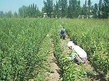 According to recent research: "grafting technology had been practiced in China before 2000 BC".[26] Additional evidence for grafting in China is found in Jia Sixie's 6th century CE agricultural treatise Qimin Yaoshu (Essential Skills for the Common People).[27] It discusses grafting pear twigs onto crab apple, jujube and pomegranate stock (domesticated apples had not yet arrived in China), as well as grafting persimmons. The Qimin yaoshu refers to older texts that referred to grafting, but those works are missing. Nonetheless, given the sophistication of the methods discussed, and the long history of arboriculture in the region, grafting must have already been practiced for centuries by this time.