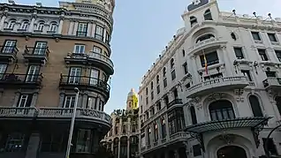 The Gran Vía serves as a showcase of early 20th-century revival architecture, with architectural styles ranging from Vienna Secession style, Plateresque, Neo-Mudéjar, Art Deco, among others.[1]