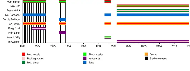 Known for a crowd-pleasing arena rock style, the band toured extensively and played to packed arenas worldwide, and was well-regarded by audiences despite a relative lack of critical praise.[4] The original trio reunited at various times later into the band's career; after Farner's final departure in 1998, Brewer and Schacher have continued touring as Grand Funk Railroad.