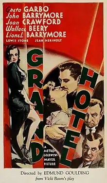 Producer Irving Thalberg purchased the rights to Vicki Baum's novel Menschen im Hotel for $13,000 and then commissioned William A. Drake to adapt it for the stage.[6] It opened on Broadway at the National Theatre on November 13, 1930, and ran for 459 performances.[7] Pleased with its success, Thalberg had Drake and Béla Balázs write the screenplay, and had a budget at $700,000.[6] There was some controversy about Greta Garbo, with her strong Swedish accent, playing a Russian.[8]