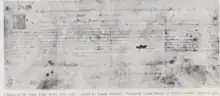 On 14 January 1771, Henry Somerset, the 5th Duke of Beaufort, and Grand Master of the Premier Grand Lodge of England, deputized Montfort by warrant to be the "Grand Master of and for America." The warrant is in possession of the Grand Lodge of North Carolina and is written in ink and copper on parchment. The seal of the Premier Grand Lodge of England is in the upper left corner.[14][15][16] Although his commission granted him jurisdiction over the English colonies, notes from the Premier Grand Lodge of England at the time noted his commission's jurisdiction was over the Province of North Carolina. Nonetheless, Montfort styled his signature "G.M.A.," meaning "Grand Master, America," and indeed chartered a lodge outside the Province of North Carolina.[17][18][19]