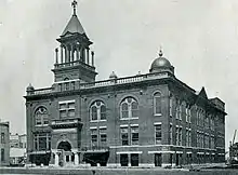 The cornerstone was laid in 1899 and the building was occupied one year later, in June 1900. The building was faced in Menominee red pressed brick and trimmed in Little Falls granite. It featured over 55,000 square feet of floor space, a banquet all which seated 455 and a two-story, 1,100-seat auditorium. There were lodge rooms, a kitchen, billiard room, library, and offices. In 1902, two years after the building was opened, Maj. Rufus Fleming, who had been a major force in the local Scottish Rite bodies for twenty years, and who was instrumental in the construction of the building, died. He was interred floor of the Scottish Rite room.