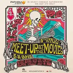 Grateful Dead Meet-Up at the Movies is an annual event that began in 2011.[1] At the Meet-Up, concert videos and films of the rock band the Grateful Dead are shown in movie theaters at multiple locations.[1][2] Each yearly screening occurs only once.[1][3] The event provides a venue and opportunity for the band's fans, known as Deadheads, to gather in celebration and camaraderie.[3]