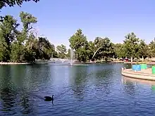 Great Falls is named for a series of five waterfalls located on the Missouri River north and east of the city.[7] The Lewis and Clark Expedition of 1805–1806 was forced to portage around a 10-mile (16 km) stretch of the river in order to bypass the falls; the company spent 31 days in the area, performing arduous labor to make the portage.[8] Three of the waterfalls, known as Black Eagle, Rainbow and the Great Falls (or the Big Falls), are among the sites of five hydroelectric dams in the area, giving the city its moniker, “The Electric City”.[8] Other nicknames for Great Falls include “The River City” and “Western Art Capital of the World”.[7] The city is also home to two military installations: Malmstrom Air Force Base east of the city, which is the community's largest employer; and the Montana Air National Guard to the west, adjacent to Great Falls International Airport.[9][10] The federally recognized Little Shell Tribe of Chippewa Indians of Montana are located in Great Falls.