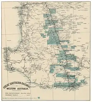 {{citation}}: CS1 maint: multiple names: authors list (link) - West Australian Land Company (1890), The West Australian Land Company, Limited (Great Southern Railway of Western Australia.) : descriptive prospectus of company's land, Stirling Bros. & Co., Printers, retrieved 17 February 2014