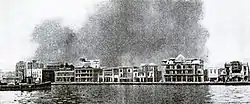 The Great Thessaloniki Fire of 1917 (Greek: Μεγάλη Πυρκαγιά της Θεσσαλονίκης, 1917) destroyed two thirds of the city of Thessaloniki, the second-largest city in Greece, leaving more than 70,000 homeless.[1] The fire burned for 32 hours and destroyed 9,500 houses within an extent of 1 square kilometer. Half the Jewish population emigrated from the city as their livelihoods were gone. Rather than quickly rebuilding, the government commissioned the French architect Ernest Hébrard to design a new urban plan for the burned areas and for the future expansion of the city. His designs are still evident in the city, most notably Aristotelous Square, although some of his most grandiose plans were never completed due to a lack of funds. French navy official Dufour de la Thuillerie writes in his report that "I saw Thessaloniki, a city of more than 150,000 people, burn".[1]
