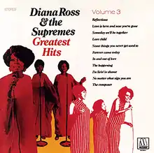 Diana Ross & the Supremes: Greatest Hits Vol. 3 is a 1969 compilation album by Diana Ross & the Supremes, released on the Motown label.[2] It features all of the hits released by the group between 1967 and 1969 save for the Supremes/Temptations duet singles. After Florence Ballard's mid-1967 departure from the group, Supremes singles were recorded by Diana Ross with session singers The Andantes on backgrounds instead of new Supreme Cindy Birdsong and founding member Mary Wilson, including "Love Child" and "Someday We'll Be Together" (Birdsong's voice in fact does not appear on this album).