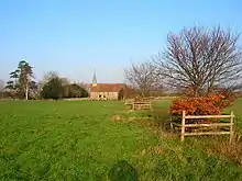 Like nearby Wiggonholt Church, which it resembles,[4] Greatham Church was erected in about 1100 to serve the sparsely populated marshlands next to the River Arun between Pulborough and Amberley. The hamlet was an agricultural community from the Saxon era,[5] and shepherds would have formed the bulk of the early congregation.[6][7] The Amberley Wild Brooks Site of Special Scientific Interest is nearby.[8] Rubble and brickwork from nearby Roman sites was incorporated in the walls,[7] which are aligned at odd angles and do not match in length or thickness.[6]