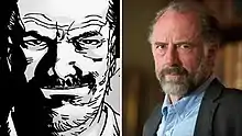 ![]() Gregory, as he appears in the comic book series (left) and as portrayed by Xander Berkeley in the television series (right). | |