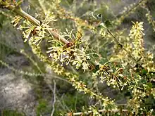 This grevillea grows along creeklines and on sandstone outcrops in sandy to sandy-loamy soils on sandstone or in lateritic gravel in low, open heath. It is found from near Eneabba and south to Jurien Bay and Mount Lesueur, in the Geraldton Sandplains and Swan Coastal Plain bioregions of south-western Western Australia.[2][3][4]