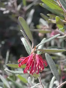 - 'Poorinda Constance' - New South Wales form of G. juniperina x red flower form of G. victoriae[41]