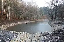 The Großer Zschand is the longest dry valley in Saxon Switzerland and runs for about 6 km from the Neumann Mill in the Kirnitzsch valley to the Roßmaulwiese meadown in Bohemian Switzerland. The Großer Zschand has no permanent watercourse; during times of snowmelt or after heavy rain, individual, locally limited watercourses and small marshy areas are formed.
