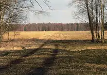 The Großes Moor (literally "Great Bog") near Gifhorn is part of the Northwest German raised bog region, which stretches from the Netherlands to the eastern border of Lower Saxony on the sandy areas (geest) left behind by the ice age. The moor has a total area of about 6,100 hectares (15,000 acres), of which around 5,000 hectares (12,000 acres) are raised bog and some 1,100 hectares (2,700 acres) are fen. The peat layer is up to almost 6 metres thick in places.[1] Individual parts of the moor have their own names like Stüder Moor, Hestenmoor or Weißes Moor.