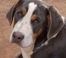 The Greater Swiss Mountain Dog (German: Grosser Schweizer Sennenhund or French: Grand Bouvier Suisse) is a dog breed which was developed in the Swiss Alps. The name Sennenhund refers to people called Senn or Senner, dairymen and herders in the Swiss Alps. Greater Swiss Mountain Dogs are almost certainly the result of indigenous dogs mating with large mastiff-type dogs brought to Switzerland by foreign settlers. At one time, the breed was believed to have been among the most popular in Switzerland.[1] It was assumed to have almost died out by the late 19th century, since its work was being done by other breeds or machines, but was rediscovered in the early 1900s.[2]
