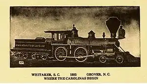 A railroad-dominated town started when the Atlanta Charlotte Airline Railway placed a turntable for engines to be spun. They operated from the 1880s to the 1920s and Southern Railway (U.S.) continues to carry passengers to this day (now known as Norfolk Southern). Mail drops and pickups by train occurred several times per day in Grover often with the mail bag put on a hook while the train came through at speed. Amtrak also operates on the line (under permission) and carries passengers from Atlanta to Charlotte, Richmond, Boston, and New York City. George W. Bush made a rail stop in Grover during his U.S. Presidential campaign.