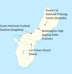 The Guam national football team represents Guam, an overseas territory of the United States in international football and is controlled by the Guam Football Association. They are affiliated with the Asian Football Confederation's East Asian Football Federation region.