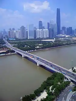 ![]() Guangzhou Bridge with Zhujiang New Town and the Guangzhou Opera House in the background (September 2010) | |