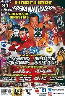The Guerra de Dinastías (literally "War of the Dynasties", or "War of the Families") show is a major lucha libre supercard show produced and scripted by Mexican professional wrestling promotion International Wrestling Revolution Group (IWRG). The show was sanctioned by Promotores Asociados de Lucha Libre ("Wrestling Promoters Association"; PALL) and took place on January 31, 2019, in Arena Naucalpan, Naucalpan, State of Mexico, Mexico. The top matches were shown live on the +LuchaTV YouTube channel.