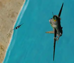 A CGI recreation of Fast Eagle 107's AIM-9 Sidewinder about to hit a Libyan Su-22 over Gulf of Sidra.