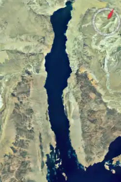 The Gulf of Suez Rift is a continental rift zone that was active between the Late Oligocene (c. 28 Ma) and the end of the Miocene (c. 5 Ma).[1] It represented a continuation of the Red Sea Rift until break-up occurred in the middle Miocene, with most of the displacement on the newly developed Red Sea spreading centre being accommodated by the Dead Sea Transform. During its brief post-rift history, the deepest part of the remnant rift topography has been filled by the sea, creating the Gulf of Suez.