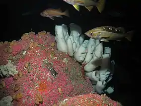 ![]() Yellowtail rockfish over boot sponges in Greater Farallones NMS | |