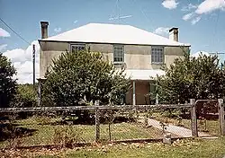 Gundayne is a two-storey residence of symmetrical design, built in approximately 1860 on land purchased from the Australian Agricultural Company. It is prominently located on the southern approach to the township to Booral. The land visually associated with the residence is bounded by the main road to the west, a lane to the south and a creek to the east and north and is approximately four hectares in area.[1]
