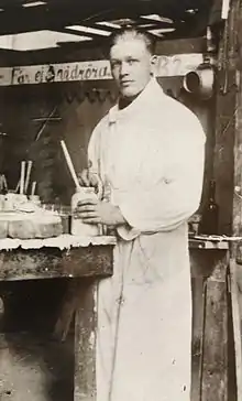 His prolific easel paintings covered a varied range of subjects, but he principally depicted the coastal landscapes of Blekinge[2] as well as sacred themes. He had one-man exhibitions in Kalmar in 1934 and Malmö in 1944, among others, and participated in exhibitions at the Kulturen museum in Lund in 1929, and the Stockholm Exhibition of 1930, as well as in exhibitions of modern religious art in Eksjö in 1948 and Vetlanda in 1949. His work was part of the painting event in the art competition at the 1936 Summer Olympics.[3]