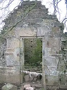 An unusual example exists in East Ayrshire, Scotland at Knockinglaw (now Knockenlaw mound); it is shown on the 1896 OS and still exists in very poor condition as of 2007. It is near Little Onthank on the outskirts of Kilmarnock, and was originally a tumulus in which urns had been found.[38] A powder magazine was built into this large pre-existing earth mound at an unknown date and the site is now in a housing scheme.