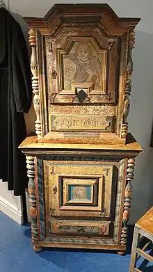 Among the active 18th century painters in Hälsingland, Gustaf Reuter and his associates are responsible for a significant portion of the total number of preserved works.[19] Their style has been discovered in almost a dozen parishes i northern Hälsingland. Several works are preserved in the collections of the Hälsingland Museum and the Nordic Museum. Complete interiors are on display at Bjuråker Forngård, Delsbo Forngård, Forsa Forngård and in the Delsbo farmhouse at Skansen.[20]