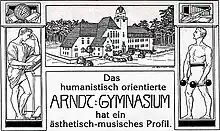 Prussian secondary schools only received the title "Gymnasium" in 1918, which for some time would be the only path to university study.[4] Due to the rise of German nationalism in the 1900s, the Gymnasium's focus on humanism came under attack, causing it to lose prestige.[5] One of the harshest critics was Friedrich Lange, who assaulted the school's "excessive humanism" and "aesthetic idealism." He argued that they are not aligned with the aims of patriotism, duty, and the idea of Germanhood and that the country's history could also provide the education and insights offered by the models of classical antiquity.[5] During the National Socialism era, it became virtually impossible for girls to study at a Gymnasium according to Hitler's idea, as stated in Mein Kampf, the education of girls should be conditioned only by the task of motherhood.[4]
