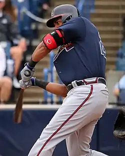 On July 30, 2015, in a three-team trade, the Atlanta Braves acquired Olivera, Paco Rodriguez, minor-league pitcher Zachary Bird and a competitive balance draft pick for the 2016 MLB Draft, while the Dodgers acquired Mat Latos, Michael Morse, Bronson Arroyo, Alex Wood, Jim Johnson, Luis Avilán and José Peraza, and the Miami Marlins acquired minor-league pitchers Victor Araujo, Jeff Brigham and Kevin Guzman.[20] He was called up to the majors for the first time on September 1, 2015.[21] Six days later, Olivera hit his first major league home run in a game against the Philadelphia Phillies.[22] In the off-season, Olivera played in the Liga de Béisbol Profesional Roberto Clemente based in Puerto Rico, where he began a transition to left field. The Braves continued starting Olivera in left field during spring training.[23]