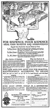 In 1932, following negotiations between the Hospital Saturday Fund (HSF) and a newly created Hospital Commission of New South Wales, a new fund was created to better serve the community. The new fund – called the Metropolitan Hospitals Contribution Fund (MHCF) – was launched on Thursday 16 June 1932, with the Lord Mayor (Ald. S. Walder) presiding.[7][8]