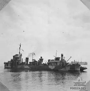 On the evening of 26 April, Diamond was in the Argolic Gulf with three light cruisers, three other destroyers and two troopships. The force began evacuating British, Australian and New Zealand troops from Nauplia. The cruisers HMS Calcutta and HMS Orion and destroyers HMS Hotspur and HMS Isis embarked nearly 2,500 troops and, at 03:00 the next morning, Calcutta ordered the evacuation force to sail. One of the troop ships, the Dutch ocean liner Slamat, disobeyed and continued to embark troops. Slamat embarked 500 troops before she eventually obeyed orders at 04:15, and the convoy sailed for Crete.[11]