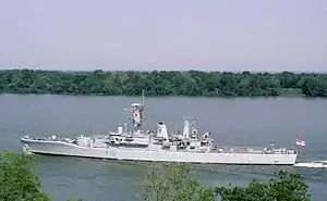 In February 1984, Euryalus joined the Standing Naval Force Atlantic (STANAVFORLANT), a NATO multi-national squadron, relieving the destroyer Glasgow.[2][3] In 1986, Euryalus became the leader of the 1st Frigate Squadron. Euryalus decommissioned on 31 March 1989 and was bought by Devonport Management Limited with the intention of then selling her to a foreign navy, but this was not to be, and in 1990, Euryalus was sold for scrap and broken up at Millom in Cumbria alongside HMS Ajax.