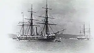 ![]() HMS Rapid anchored at Farm Cove, Sydney c. 1888. | |