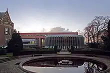 The academy is now a centre for research and teaching in public and private international law, with the aim of further scientific and advanced studies of the legal aspects of international relations. The UN General Assembly regularly refers to the “valuable contribution” that the academy "continues to make to the United Nations Program of Assistance in the Teaching, Study, Dissemination and Wider Appreciation of International Law".[1] The academy was awarded the Wateler Peace Prize (1936, 1950), the Félix Houphouët-Boigny Peace Prize (1992), the Order of Rio Branco,[2] Brazil (1999), and the Medal of the Royal Institute of European Studies,[3] Spain (2000). The academy has been nominated for the Nobel Peace Prize 34 times between 1915 and 1956.[4] The academy is part of the Hague Academic Coalition.