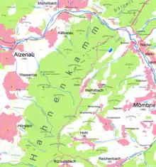 Hahnenkamm (Spessart) is a ridge of hills in the northwest of the Spessart range of Bavaria, Germany. It has an elevation of up to 435.5 m above NHN.